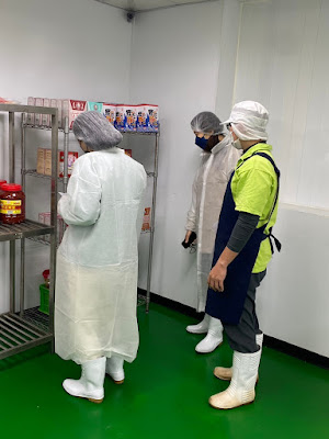 今天午餐督導委員會的老師們及會長、副會長,一早就來到營養午餐供應廠商「全盛公司」監廚。✊
